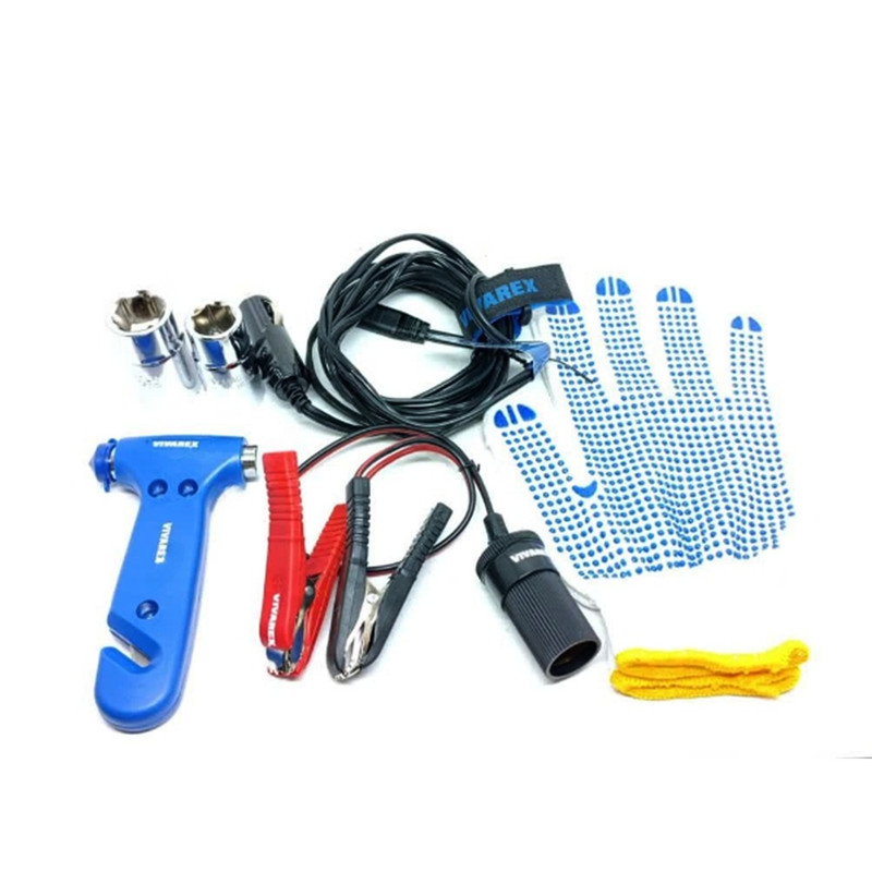 محتویات جعبه: جک برقی، بکس برقی، سیم تغذیه از فندکی داخل خودرو، بکس سایز ۱۹ و ۲۳، شلنگ مخصوص ۶۰ سانتیمتری، چکش مخصوص شکستن شیشه و بردن کمربند ایمنی.