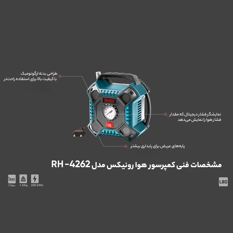 دارای لامپ LED دارای 3 نازل برای توپ، تایر و تشک بادی