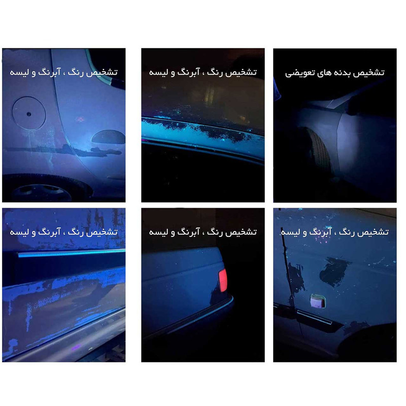 نحوه استفاده : خودرو را به محل تاریک یا نیمه تاریک منتقل کنید. برای نتیجه دقیق تر میبایست بدنه خودرو تمیز باشد. دستگاه را روشن کنید و به سمت بدنه با فاصله حداقل یک متری نگه دارید. در صورت وجود کوچکترین آسیب و رنگ شدی اختلاف رنگ کاملا واضح را مشاهده میکنید.