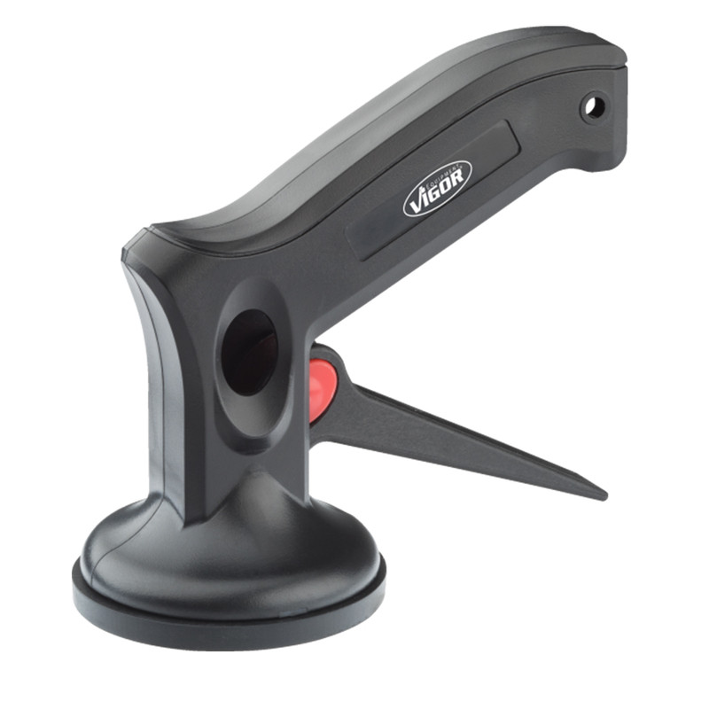 شرکت ویگور به عنوان زیر مجموعه شرکت هازت آلمان و با هدف تولید محصولاتی با قیمت اقتصادی در سال 2007 در رامشاید آلمان تاسیس شده است . این شرکت با وجود نوپا بودن ، به دلیل استفاده از متخصصین زبده و همچنین رعایت بالاترین استانداردهای تولید توانسته است محصولاتی با کیفیت عالی و قیمتی رقابتی تولید نماید . همین امر سبب شده است تا تولیدات ویگور علاوه بر کشور آلمان در بسیاری از مناطق دنیا از فروش خوبی برخوردار باشد . ابزار فوق محصولی چندکاره از شرکت ویگور می باشد که از آن می توان برای رفع قری بدنه خودرو ، حمل شیشه و نگه داشتن اجسام مسطح نظیر تبلت استفاده نمود . یکی دیگر از کاربدهای این ابزار نصب یا تنظیم شیشه آینه های بغل خودرو می باشد . حداکثر تحمل بار ین محصول 8 کیلوگرم باشد و روی بدنه آن دکمه ای جهت آزادسازی اجسام وجود دارد . قطر مکنده 70 میلی می باشد