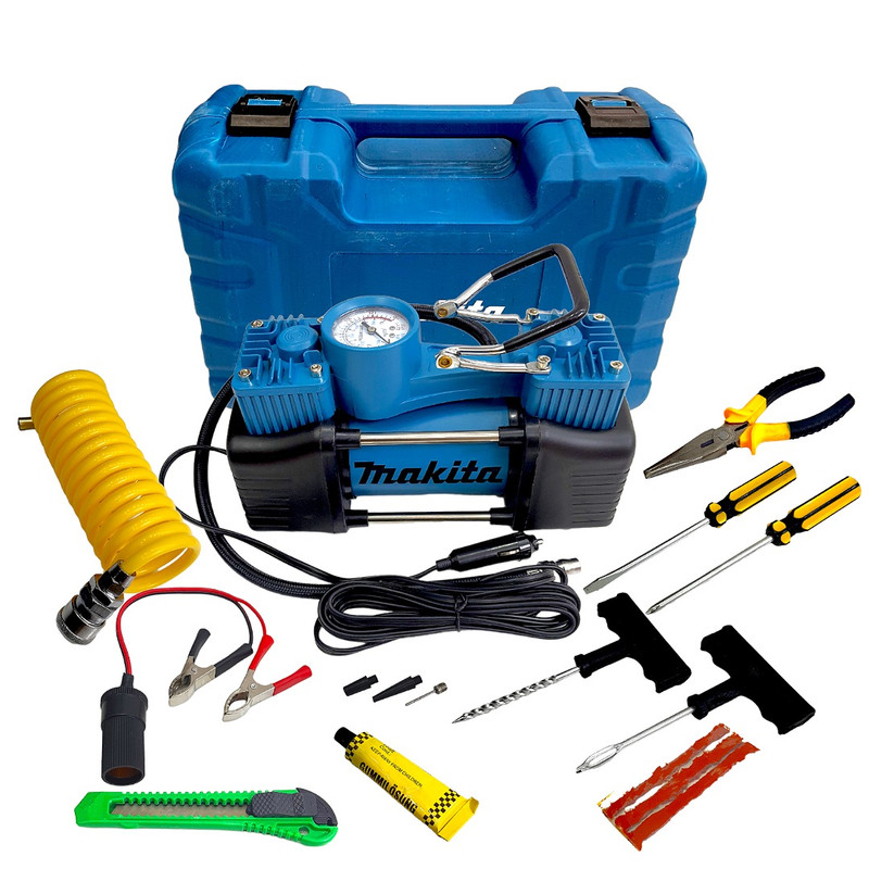 ●دارای تجهیزات کامل پنچر گیری خودرو ، موتورسیکلت و دوچرخه ●امکان باد کردن انواع توپ و بادکنک ●موتور پرقدرت ●کامل ترین پمپ باد ماکیتا ●دارای نشانگر هوای داخل لاستیک و امکان تنظیم باد ●دارای کلید روشن و خاموش