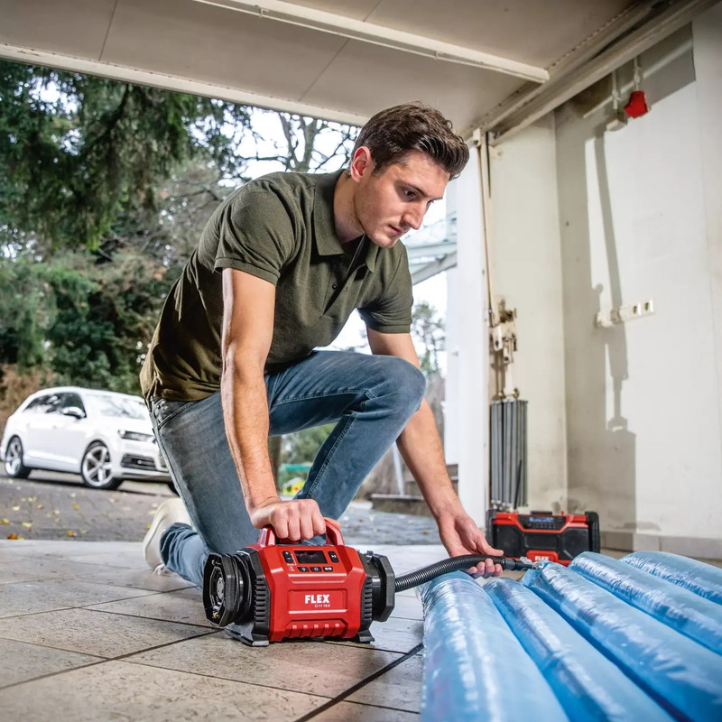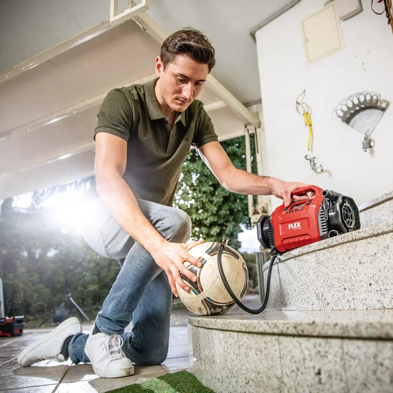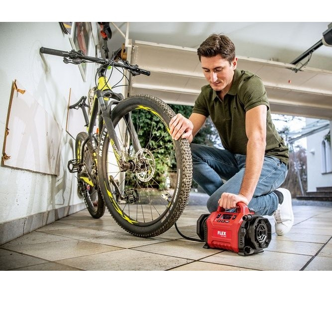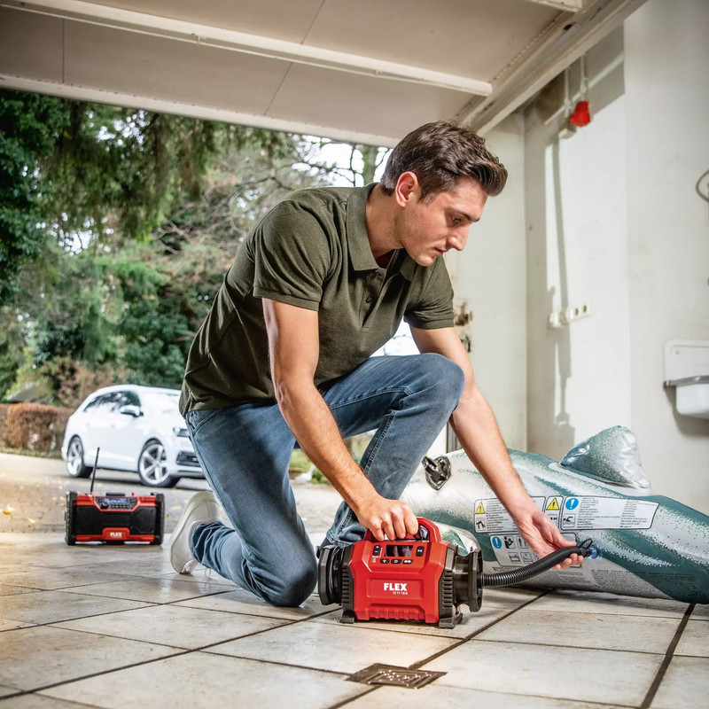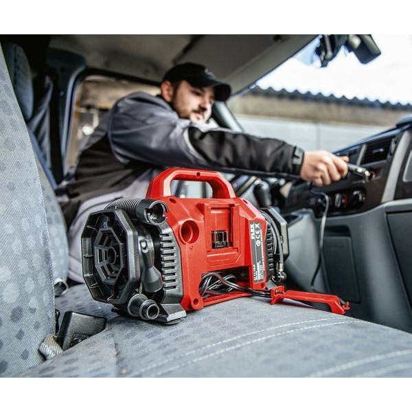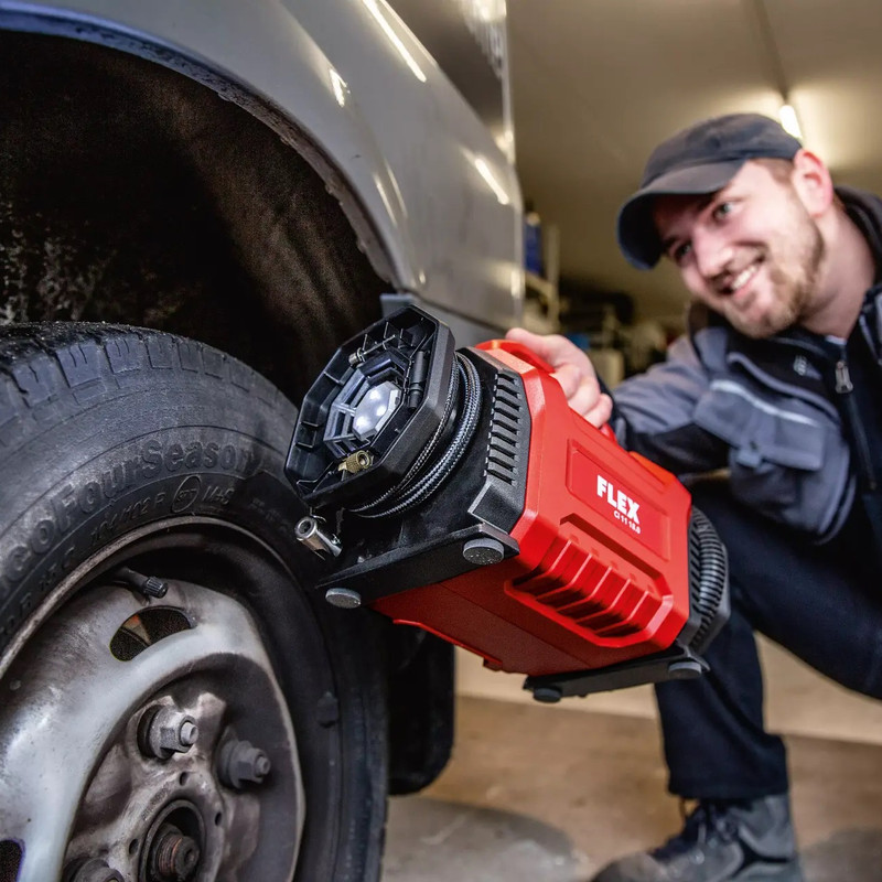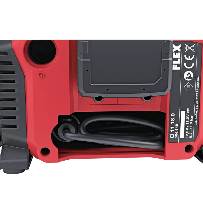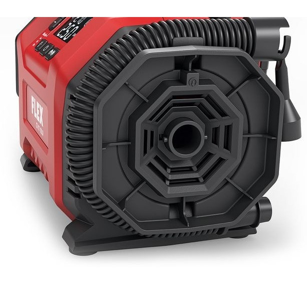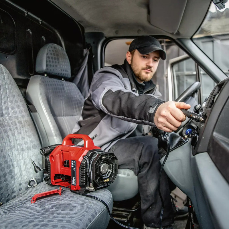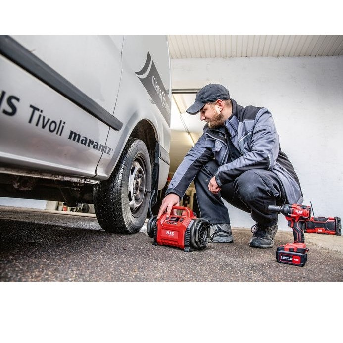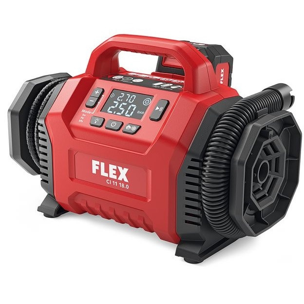 دستگاه CI 11 18.0 V یک کمپرسور هوای حرفه ای از محصولات شرکت «فلکس» (Flex) آلمان با بیش از 100 سال سابقه و مخترع سنگ فرز می باشد. این کمپرسور دارای دو خروجی می باشد. خروجی اول (خروجی فشار بالا) برای باد کردن لاستیک خودرو، لاستیک دوچرخه، انواع توپ مناسب بوده و خروجی دوم (خروجی حجم بالا) برای باد کردن اشیاء حجم بالا نظیر تشک، استخر بادی، قایق بادی و ... مناسب می باشد جهت کاربری این ابزار دو گزینه دارید: یا باید آن را به فندکی 12 ولت خودرو متصل کنید یا آنکه از باتری 18 ولت فلکس استفاده کنید. توجه فرمایید باتری و شارژر همراه این ابزار نبوده و بایستی جداگانه از دیجی کالا خریداری شود. در زمان استفاده از خروجی اول (فشار بالا) فشار مورد نظر با دقت خیلی بالا بر روی این ابزار تنظیم شده و به محض رسیدن به فشار تنظیم شده دستگاه به صورت خودکار خاموش می شود. این ابزار دارای LED شبیه چراغ قوه می باشد. سیستم مدیریت الکترونیکی (EMS) این کمپرسور از دستگاه محافظت می کند، عمر کاری و کارایی را افزایش می دهد. این ابزار دارای سیستم محافظت در مقابل اضافه بار و سیستم پایش دما جهت جلوگیری از سوختن آن و فشار آمدن به موتور آن می باشد. شرکت فلکس در سال 1922 در منطقه Bad Cannstatt نزدیک اشتوتگارت آلمان توسط Ackermann و Schmitt تاسیس گردید. در همان سال سنگ فرز MS6 با شفت Flexible و در سال 1954 اولین سنگ فرز سرعت بالای دنیا تحت عنوان DL9 توسط شرکت فلکس اختراع شد. هم اکنون شرکت فلکس معروفترین و معتبرترین تولید کننده پولیشر برقی و شارژی محسوب گردیده و تخصص آن تولید انواع ابزارآلات برقی و شارژی در صنایع خودرو، کار با فلزات، پرداخت سنگ و ابزارآلات مرتبط با ساخت و ساز و بازسازی می باشد.